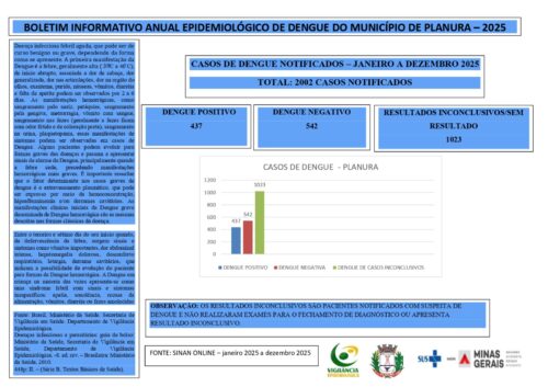 DestaqueSaúde BOLETIM INFORMATICO ANUAL EPIDEMIOLÓGICO DE DENGUE DO MUNICÍPIO DE PLANURA- 2025 22 de janeiro de 2026 Fernando Carvalho 525 visualizações Visited 41 times, 1 visit(s) today